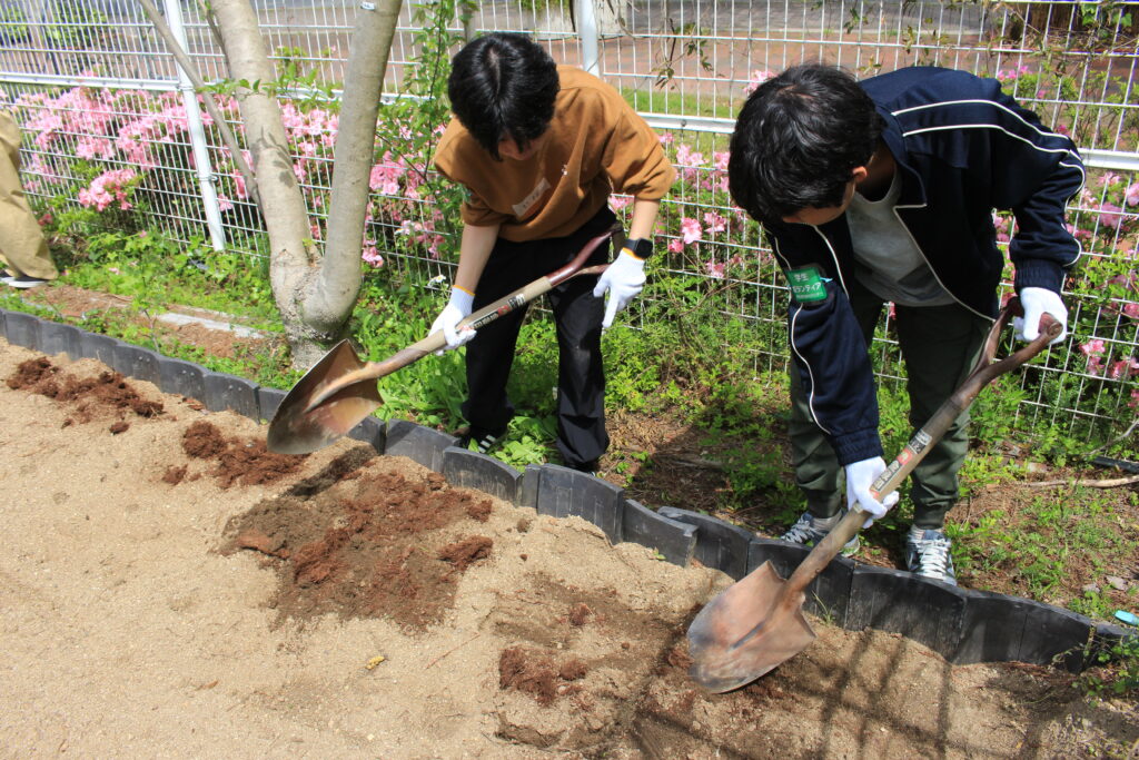 午前は「植物大好き!」チームがハーブの種を植えて、レモングラスの苗を植えてくれました。このチームは、レモングラスを育てて、育てた葉を年末にポピアンクラフトでしめ縄にするというテーマです。今は小さな苗ですが、大きく伸びてたくさん収穫できると良いですね!
