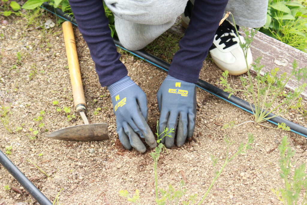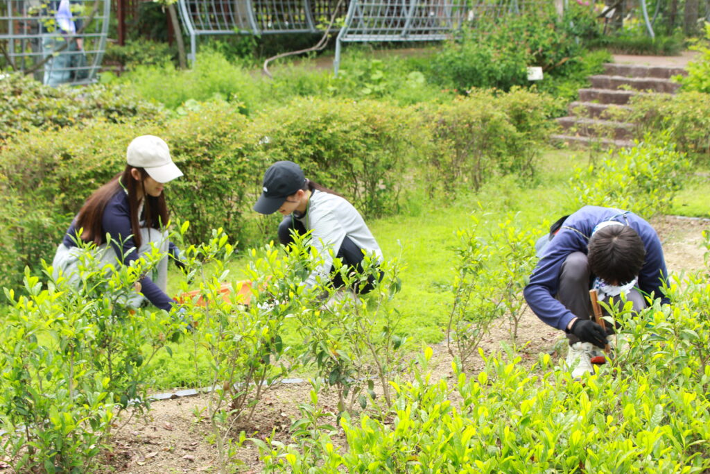そして、チャノキイベントに向けてお茶の木の周りの除草をしてもらいました。