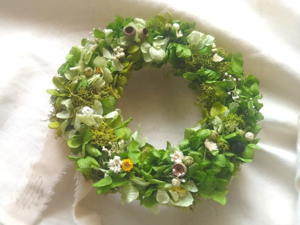 春~夏にぴったりな色合いの見るだけで癒されるリースです。