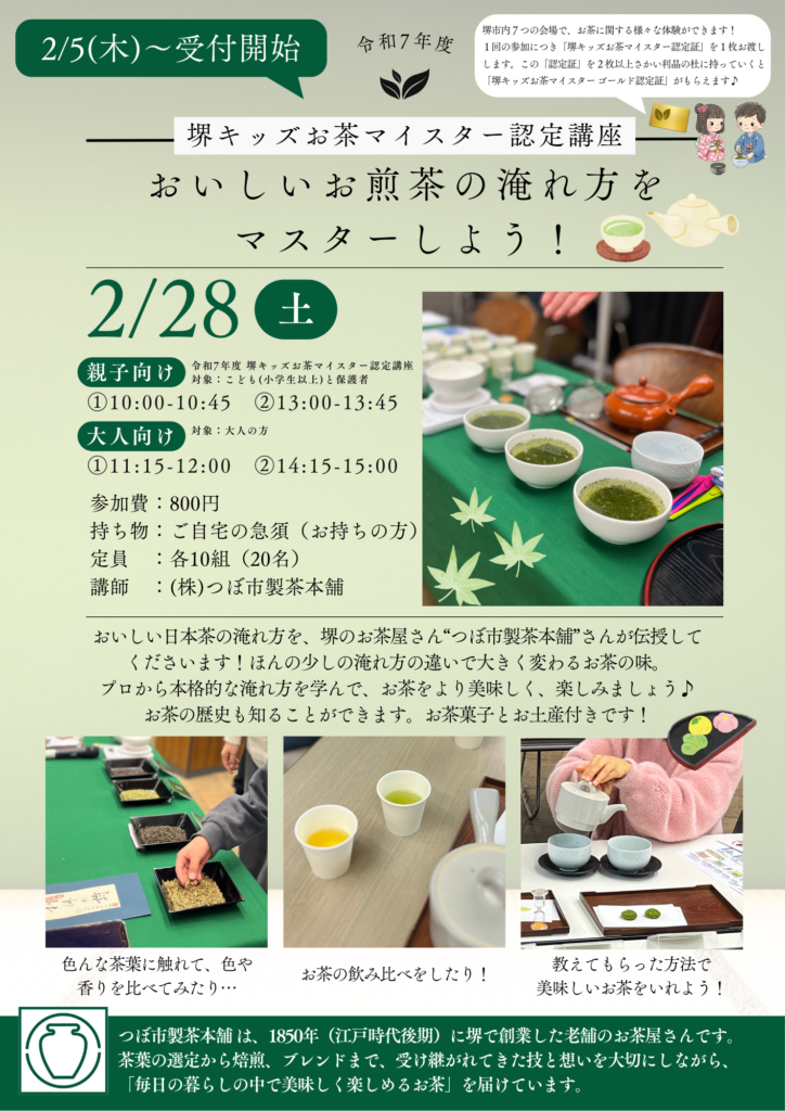 【親子向け】令和7年度 堺キッズお茶マイスター認定講座