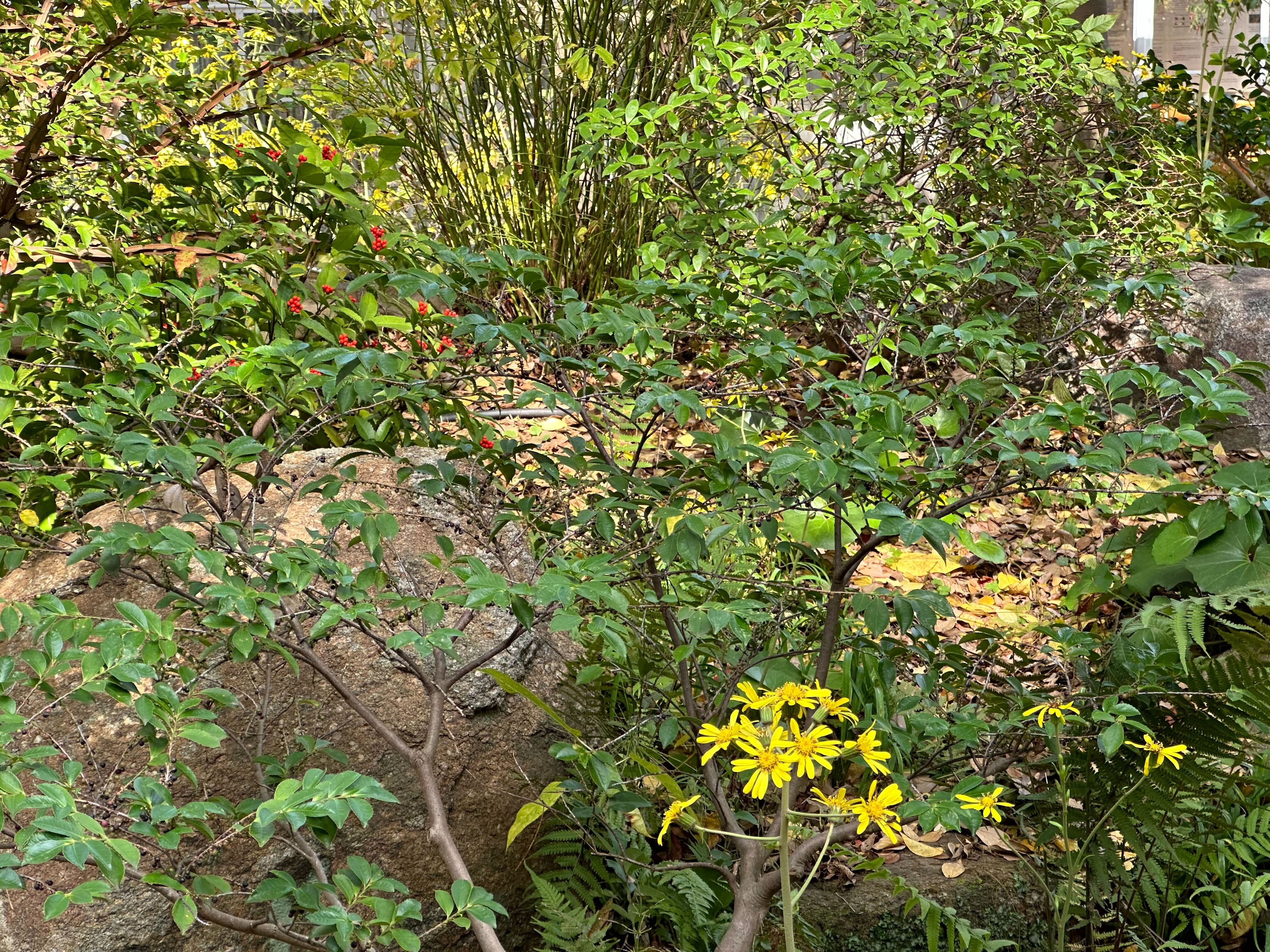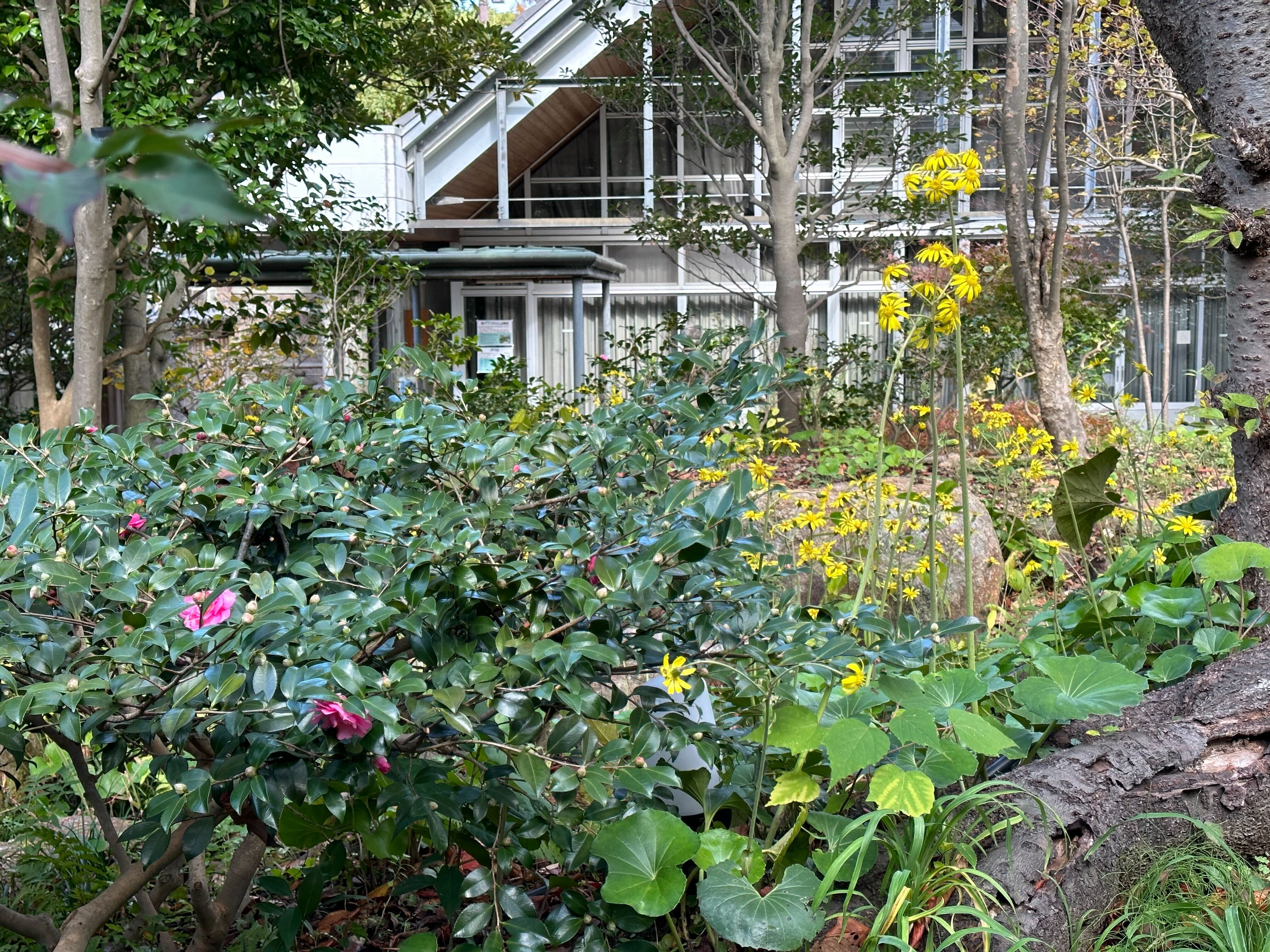 初夏にはホタルが飛び交いヒメシャラの白い花が咲き、秋にはツワブキの黄色い花が満開となります。